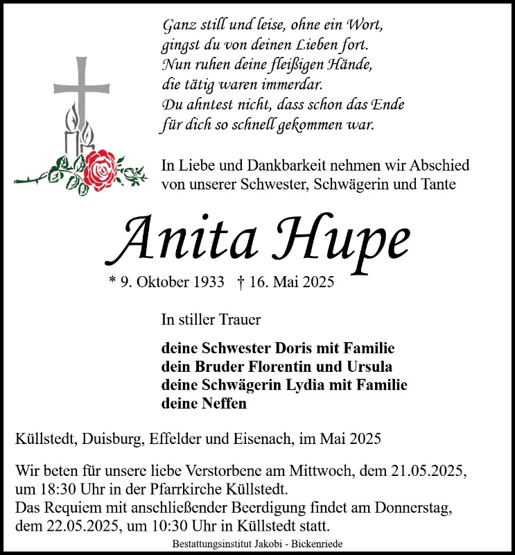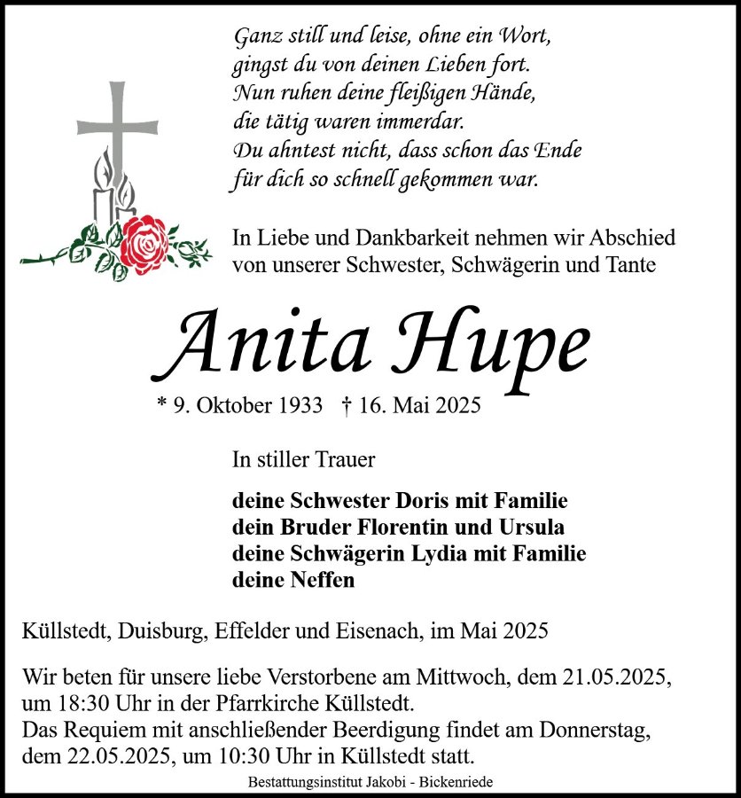 Aufrichtiges Beileid den Angehörigen, Anita kam gern in die Beschäftigungen im Altenheim, half mir und anderen Bewohnern gern beim Basteln, danke für die schönen Stunden