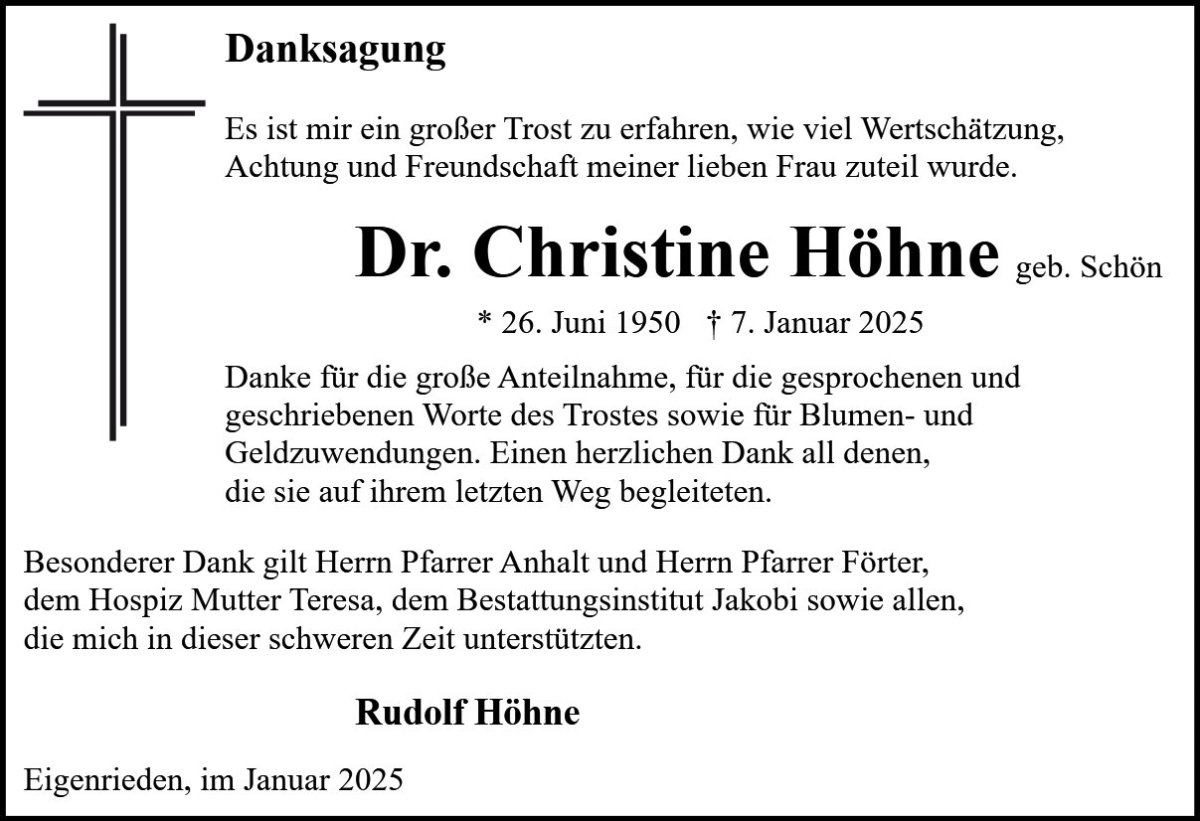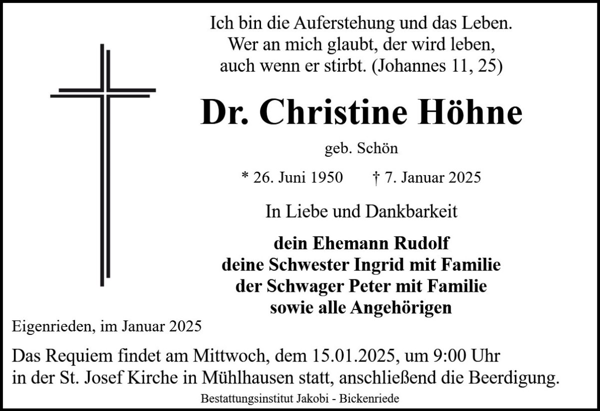 zum Tod Deiner geliebten Frau Christine ein stiller Gruß aus dem Pfarrhaus Hüpstedt. Viele schöne Erinnerungen werden wach an vergangene Tage und Begegnungen. Gut, dass wir unseren Glauben haben. Durch unsere Taufe gehört unsere Verstorbene untrennbar zu Gott und zur Gemeinschaft der Glaubenden. Diese Verbindung reißt nicht ab, auch nicht im Tod.