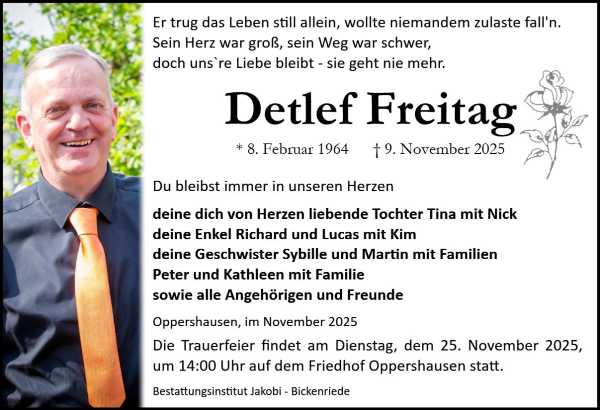 Detlef Freitaggestorben am 9. November 2025