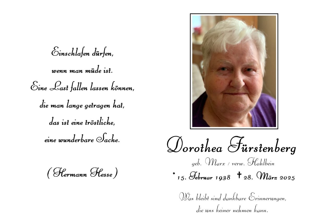 Dorothea Fürstenberg geb. Marx - verw. Hohlbein
