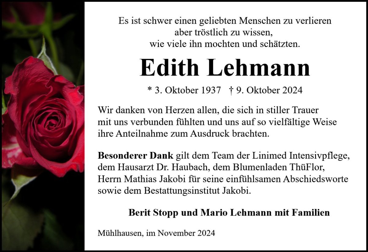 wir wünschen Ihnen für die kommende Zeit viel Kraft und dass es Ihnen gelingt, dankbar auf die positiven Erinnerungen zurückzublicken. Diese Gedenkseite möge Ihnen dabei helfen, Ihre Trauer zu teilen und das Andenken gemeinsam wachzuhalten.