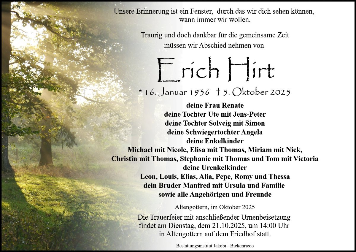 gestorben am 5. Oktober 2025 in Mühlhausen / Thüringen