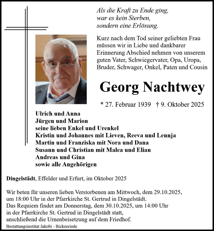 Requiem/Trauergottesdienst, St. Gertrud Kirche Dingelstädt