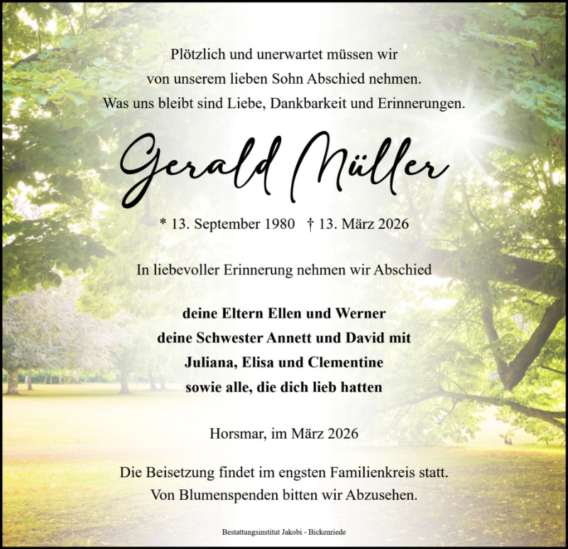 in dieser Zeit des Schmerzes wünschen wir Ihnen Kraft, den Verlust im Kreise Ihrer Liebsten zu verarbeiten. Als Zeichen unserer Anteilnahme und des Gedenkens entzünden wir dieses erste Licht. Möge diese Gedenkseite Ihnen helfen, Erinnerungen zu teilen und so das Andenken gemeinsam wachzuhalten.