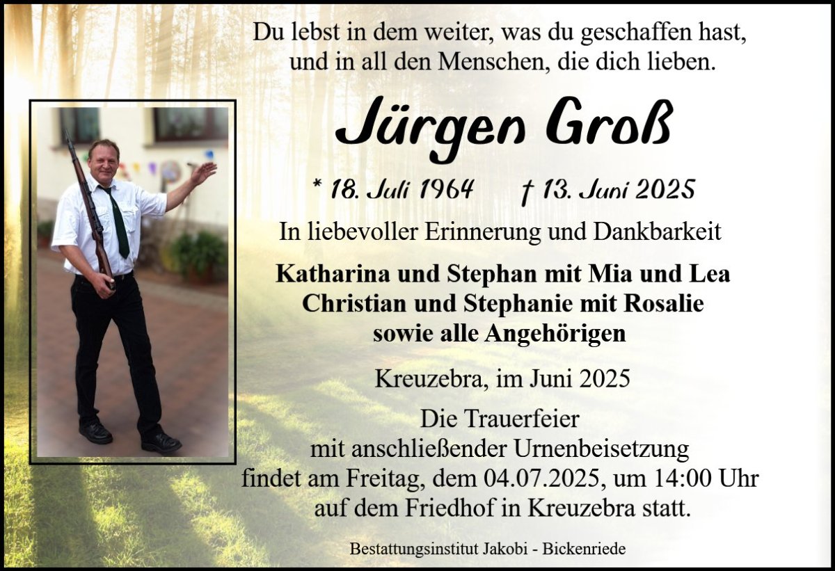 Trauerfeier mit anschließender Urnenbeisetzung, Friedhof Kreuzebra