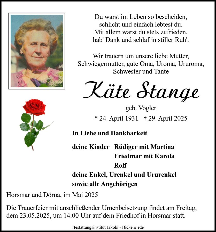 Trauerfeier mit anschl. Urnenbeisetzung, Friedhof Horsmar
