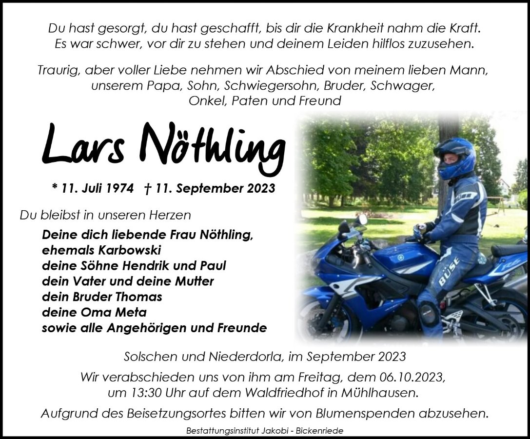 Lars hat unseren Freundeskreis bereichert und war immer da, wenn Irgendwo Hilfe benötigt wurde. Danke für Deine Freundschaft.