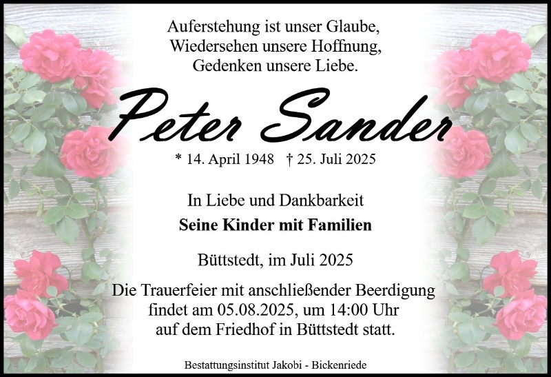 Trauerfeier mit anschließender Beerdigung, Kirchlicher Friedhof Büttstedt