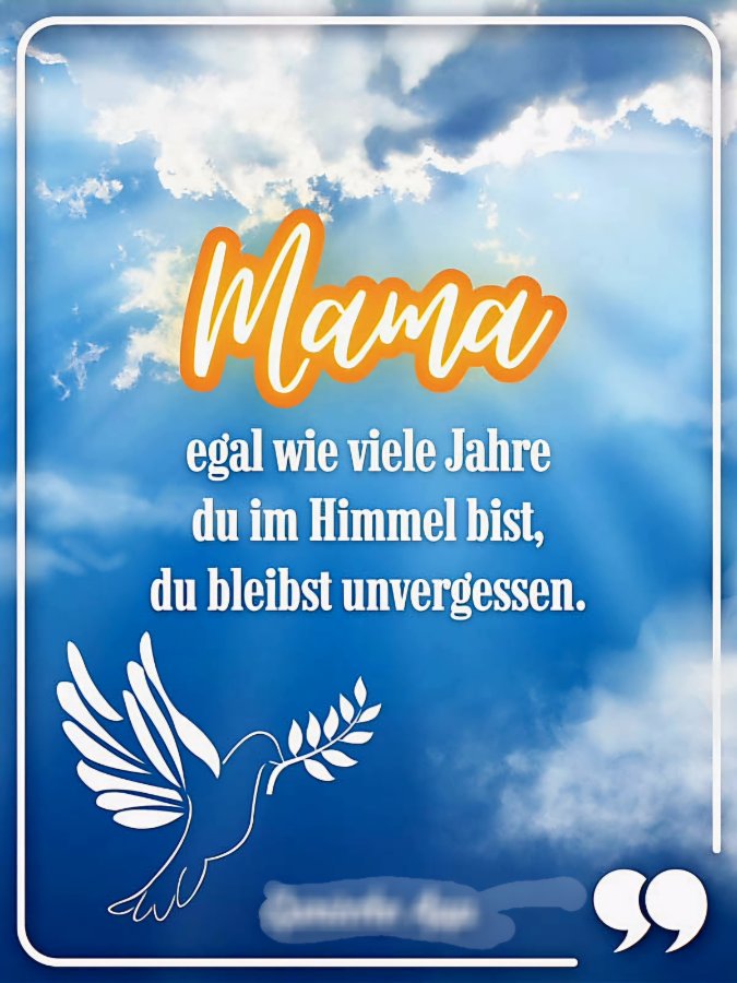 Ein Engel wacht über mich. Sie ist meine Mama. Die Menschen, die wir lieben, gehen nicht weg, sie begleiten uns jeden Tag. Ungesehen, ungehört, aber immer nah, immer noch geliebt, immer noch vermisst und so lieb und teuer.