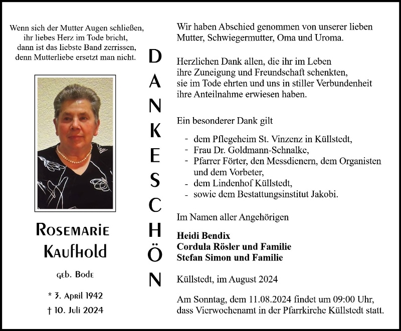 Requiem/Trauergottesdienst, St. Georg & Juliana Kirche Küllstedt